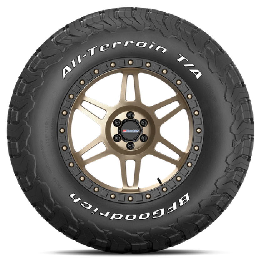 (1) Improvement depends on the size of the tire purchased. 20% improvement based on internal sidewall splitting test results derived from a simulated sidewall aggression testing machine (patent pending US20120245859A1) vs. BFGoodrich® All-Terrain T/A KO tire in size LT265/70R17. Actual on-road results may vary.